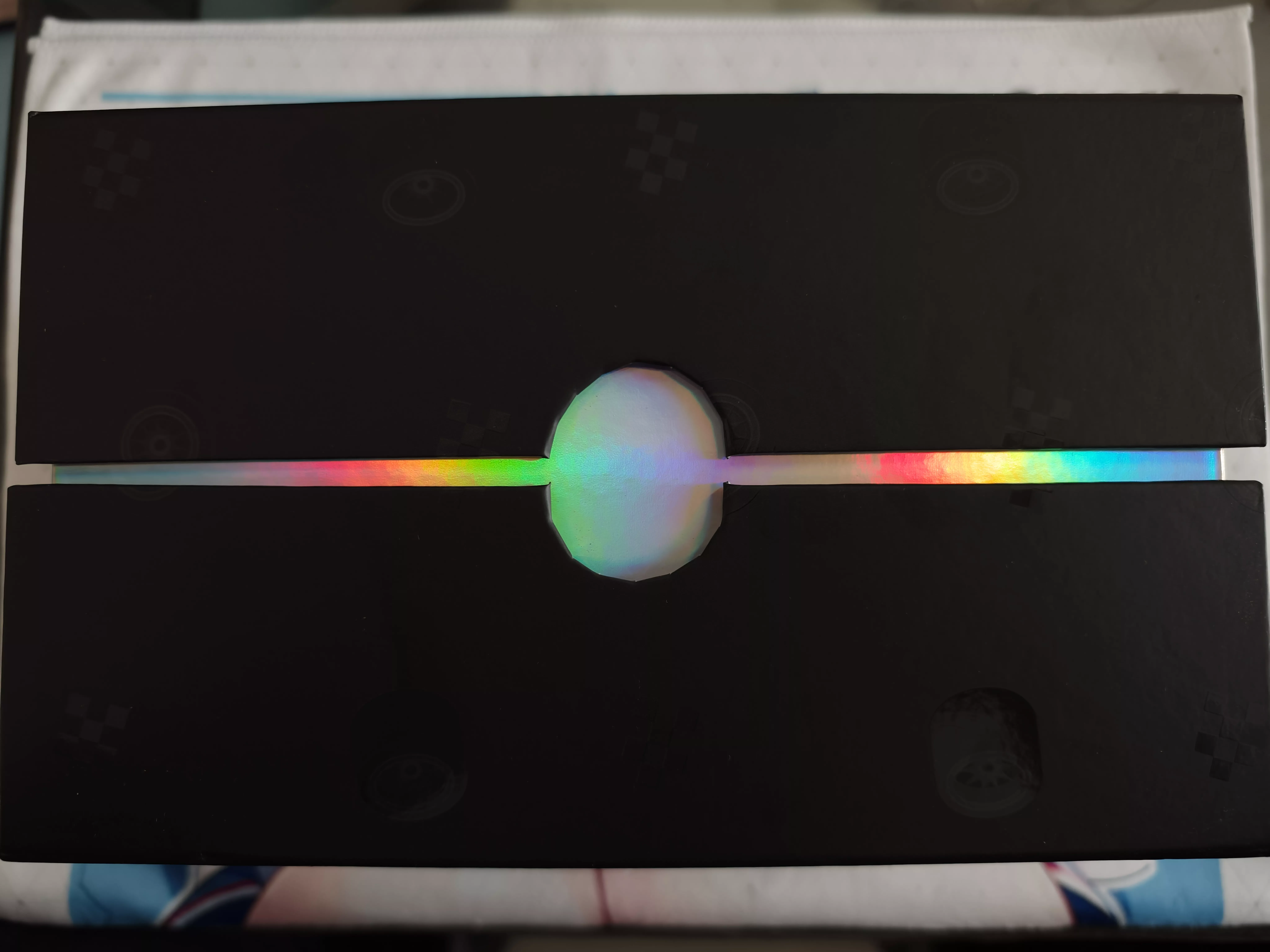 该礼盒外观的设计语言是纯黑硬纸板外加烫金镭射标识,该表示是一个 RACING 和 樱川爱 的日语名字和极具动感的赛车轮胎和指挥旗的标识。非常符合樱川爱的人物设计。同时礼盒设计非常简约,除去樱川爱的 logo 后并没有其他额外的标识,这点非常好,可以有效避免他人发现盒子的尴尬。